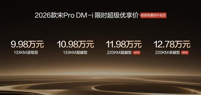 宋Pro系列已成功赢得超过百万家庭的青睐与信赖。此次,2026款宋Pro DM-i以极具诚意的限时优享价和全面进阶的产品力,为消费者提供了更具价值的选择。这不仅是对产品矩阵的有力补充,更是基于百万用户真实反馈的诚意升级。它以更长的纯电续航、更智能的科技配置、更体贴的舒适享受和更周全的安全防护,生动诠释了一款优秀家用SUV应有的核心价值,必将陪伴更多家庭悦享每一段美好旅程。