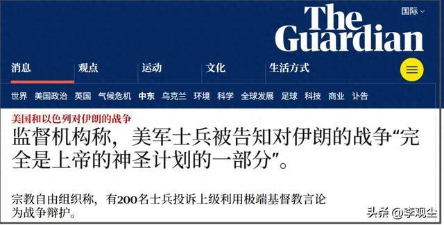英国《卫报》的报道,源自美军一位随时可能被部署到伊朗的士官实名投诉,这也是美军内部宗教极端化最直接的证据。