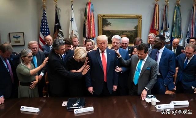 特朗普本人并非虔诚的宗教信徒,但他的核心支持者MAGA群体,绝大多数是福音派新教徒,这让他从上台之初就被宗教势力牢牢裹挟,甚至把宗教仪式当成政治工具。