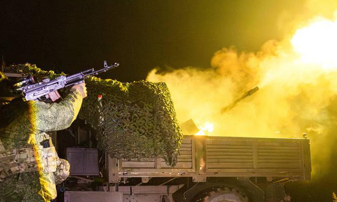俄罗斯军人正在击落乌克兰无人机 塔斯社