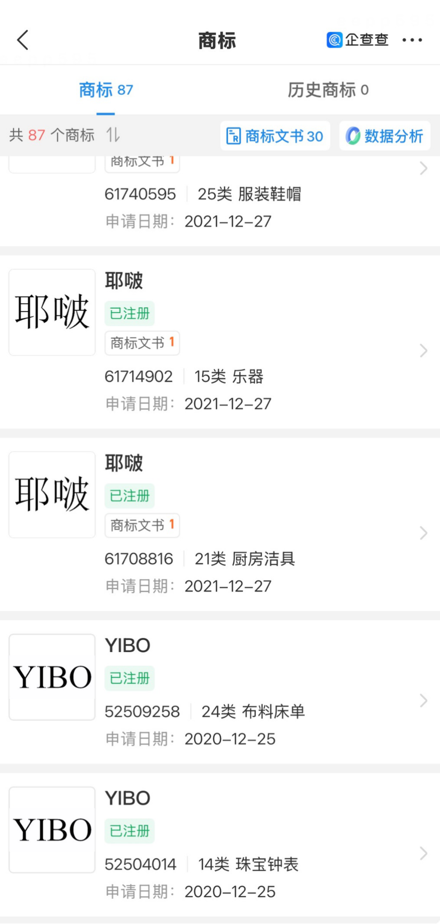 颇为值得玩味的是,王一博持股70%的天津地平线网络科技有限公司,已提前布局个人IP保护,密集申请注册 “王一博”“耶啵”“WANGYIBO”“YIBO”等多枚商标,国际分类覆盖日化用品、乐器、珠宝钟表等众多领域,目前部分商标已成功注册。