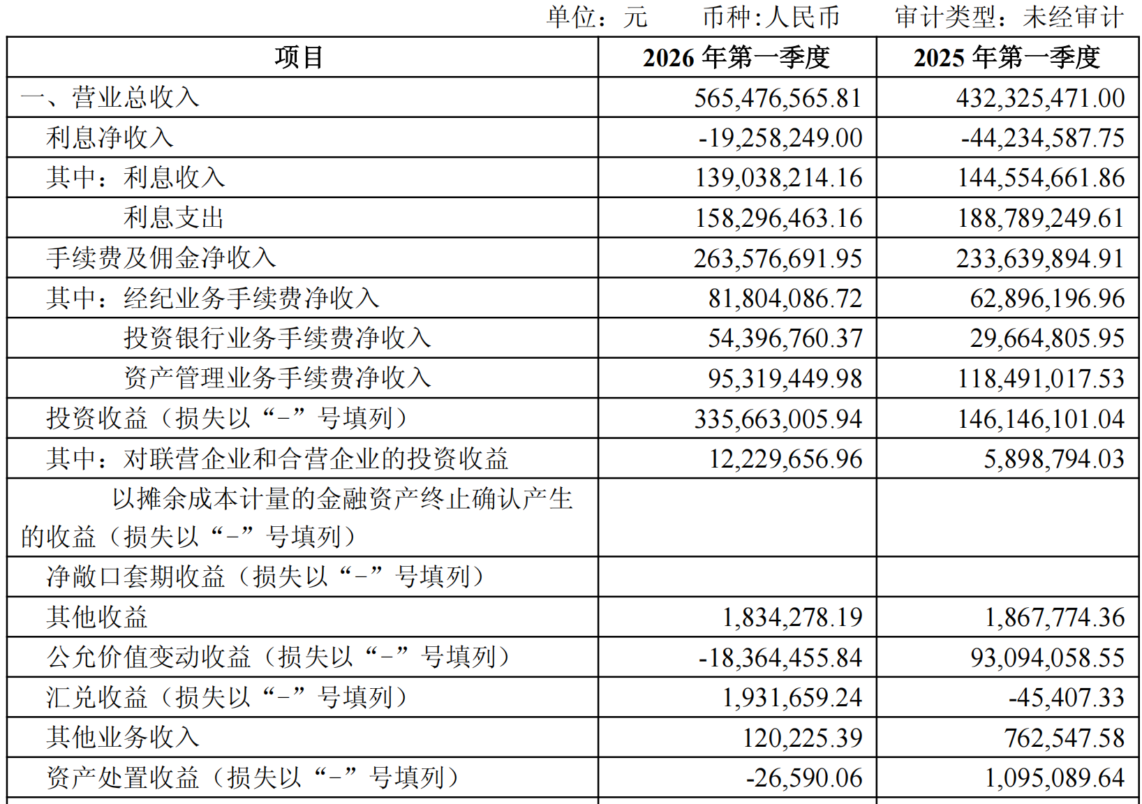 对于公司今年一季度业绩的增加,首创证券在2026年一季报中表示:“主要系投资类业务、投资银行类业务、财富管理类业务等收入增加。”